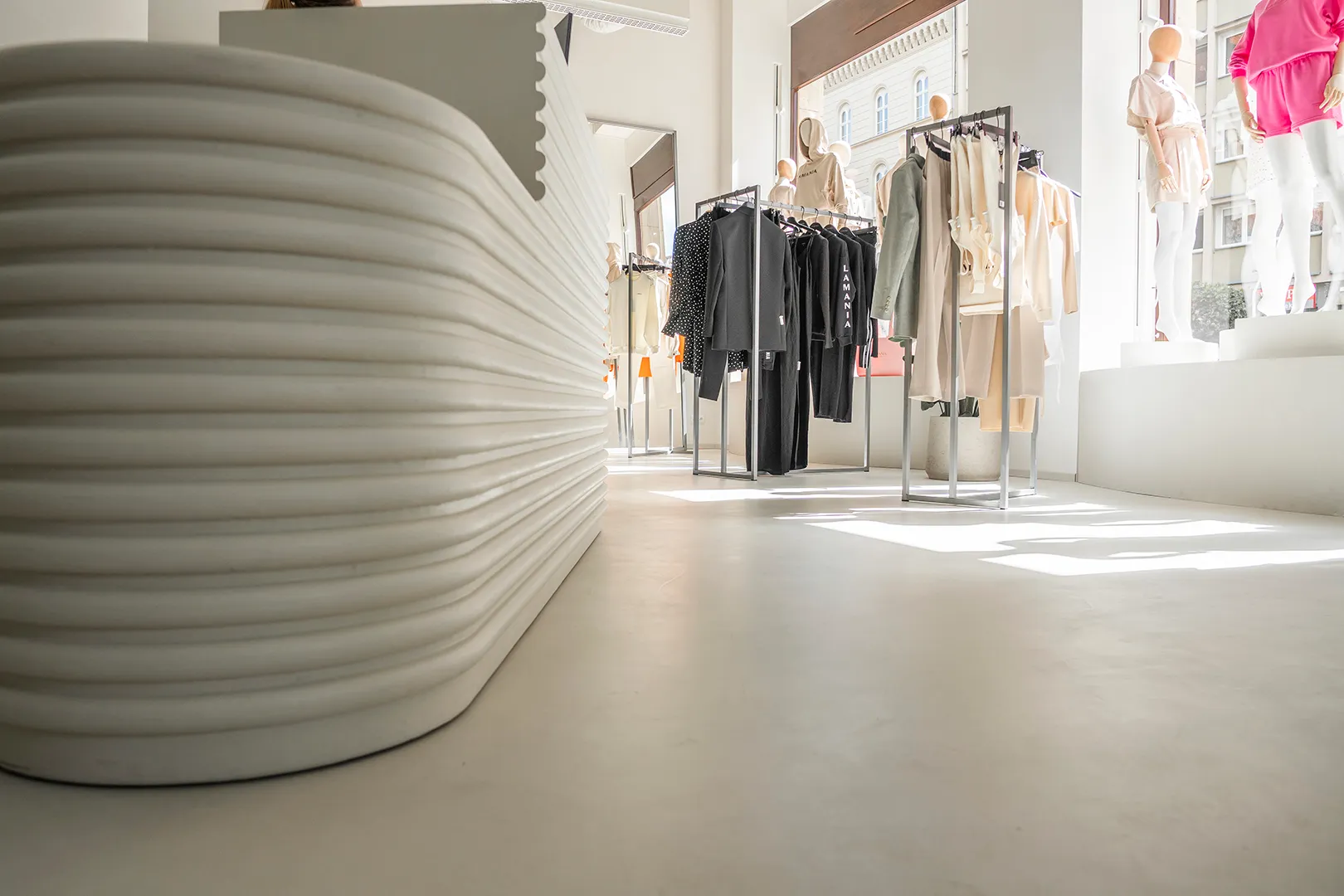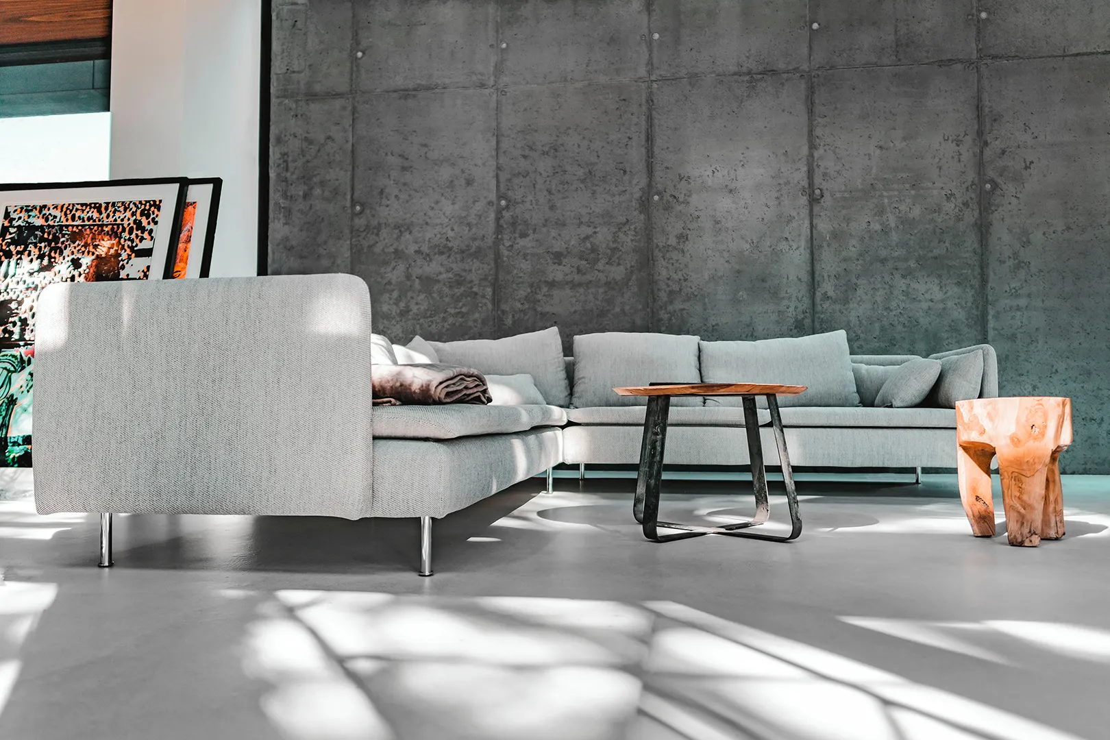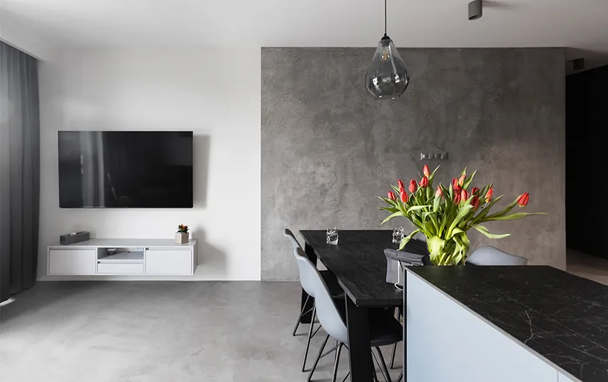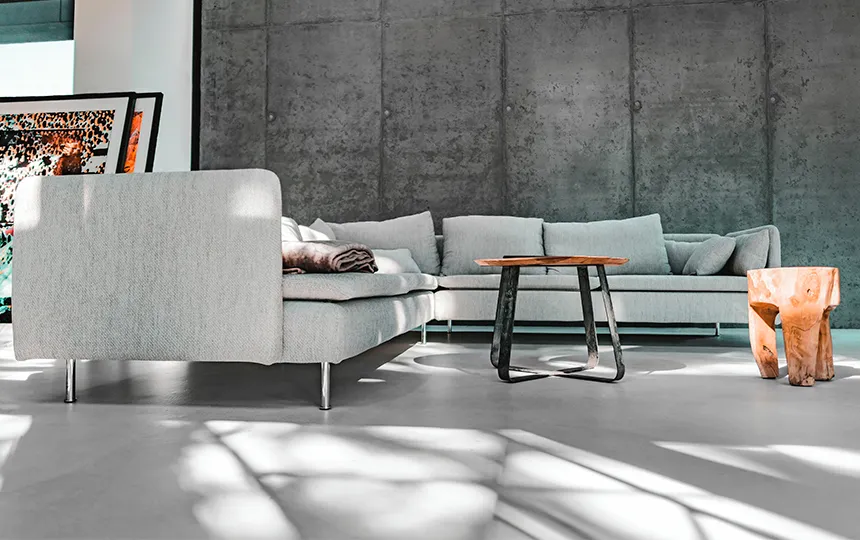 Гладкая и однородная поверхность с заметной структурой бетона