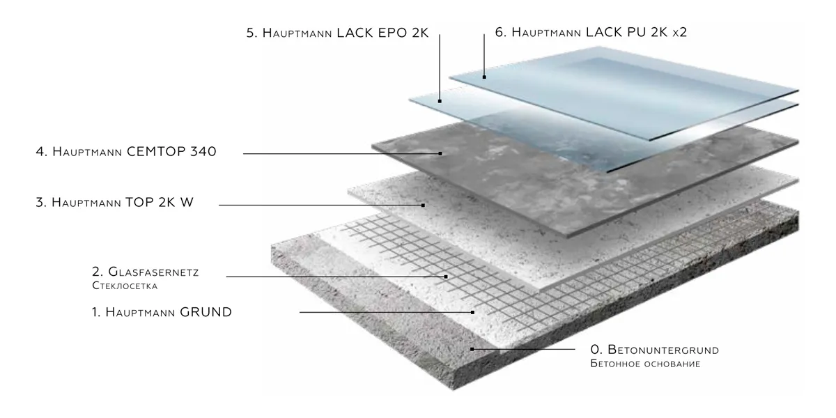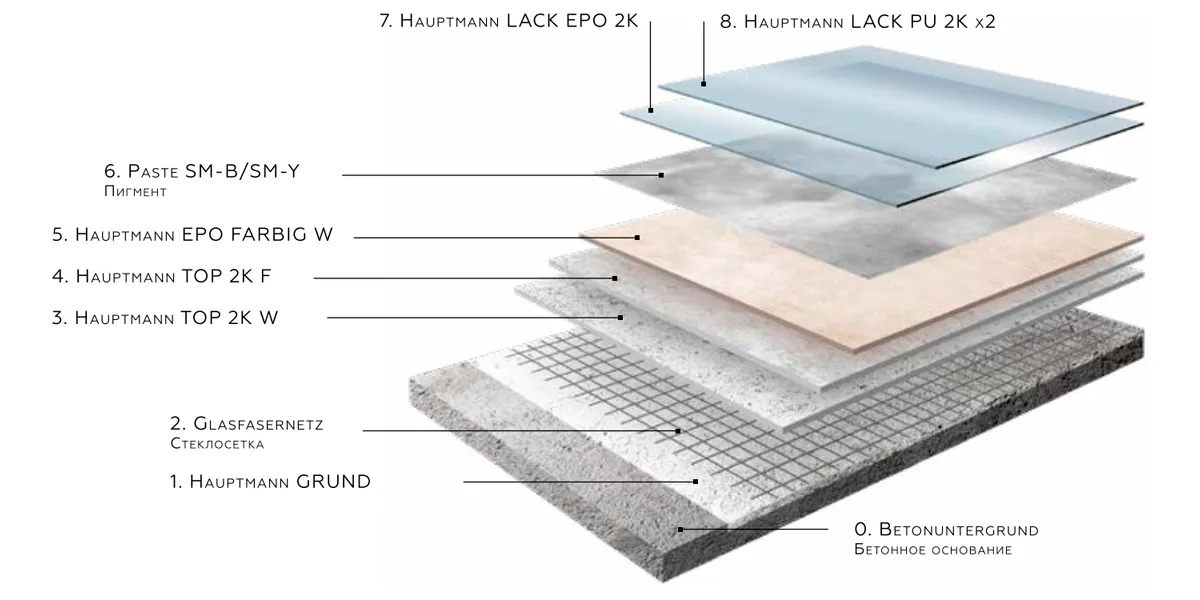 Покрытие с заметным эффектом текстуры искусственного стёртого бетона