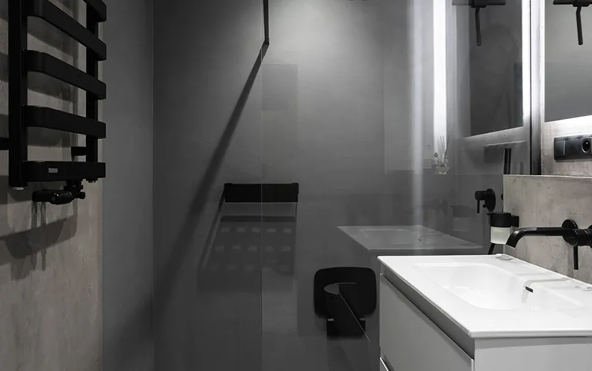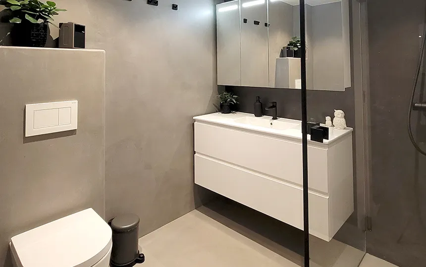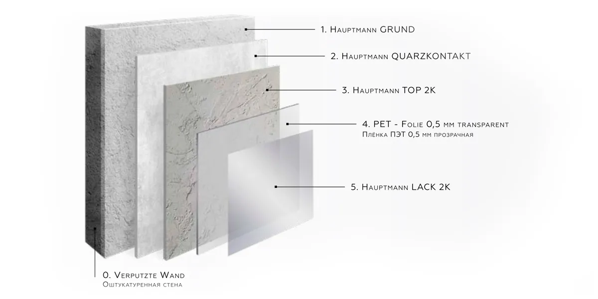 Нанесение «под плёнку» для получения гладкой фактуры с заметным узором бетона